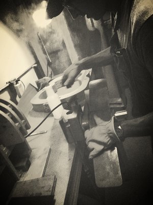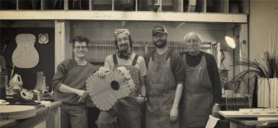 さらに高等学校の技術実習で出会った、電動工具を使うことで、できることが格段に増え、卒業後には、彼はキッチンテーブルの上に、ギターやマンドリンなどをのせて、自己流で工夫したり、調整することを始めました。 |