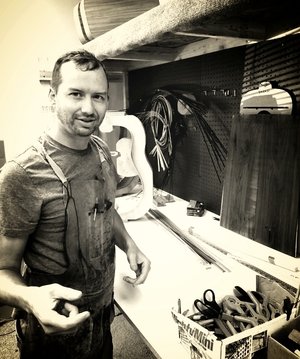 Ben Maschal (ベン・ミッシェル) ベンは13歳の時、初めて行ったブルーグラスの祭典マールフェスで、 その後、まだ10代の若者だった彼が、ブルーグラスのフェスに通っては、会場に出展しているヴィンテージ楽器を販売するテントを歩き回り、楽器を見て回ったり、マンドリンカフェなど、ギター情報サイトや掲示などを見て、ヴィンテージ楽器への探求が始まりました。 そうして彼が出会った、ギターコレクターやオールドギターの販売店、ギター製作家の影響を受けて、2001年にロバートベンに通うために、アリゾナへ引っ越しました。 卒業後、故郷へ戻って、自宅のガレージで、ギターリペアの仕事をするかたわら、カスタムギターの製作を始めます。 2010年に、彼はサイラー市に引っ越して、ノースカロライナ芸術推進協会に入会して、フルタイムのギター製作者としての道を歩み始めました。 国際的に有名なマンドリン奏者でビンテージ楽器のコレクターであるトニー・ウイリアムソンとの地元のコーヒーショップで運命的な出会いをきっかけに、ベンはマンドリン・セントラルでフルタイムで働くようになり、数多くの素晴らしいヴィンテージの楽器を深く研究するチャンスに恵まれます。 2014年に、彼はダーラムへ引っ越し、ウエス・ラムと共にPre-WarGuitarを立ち上げました。 |