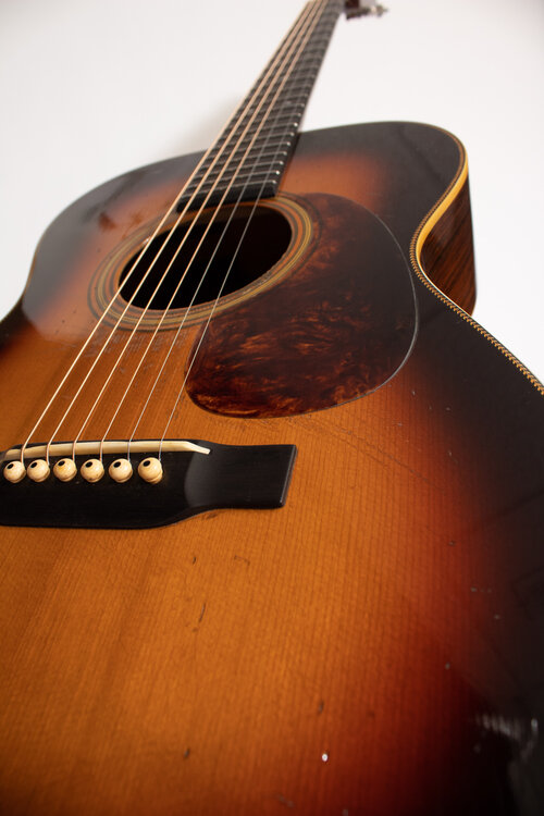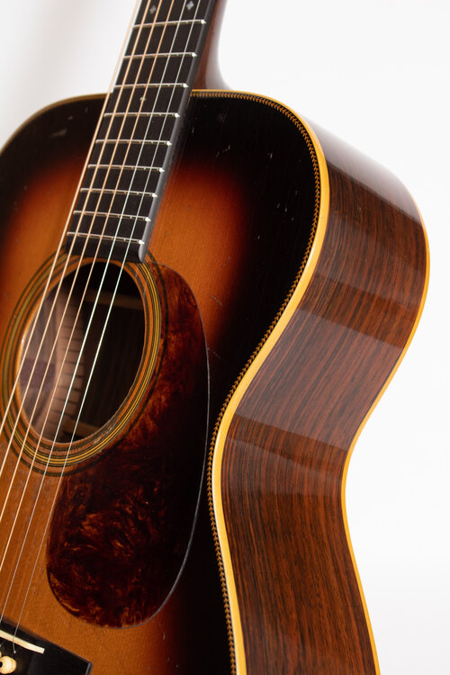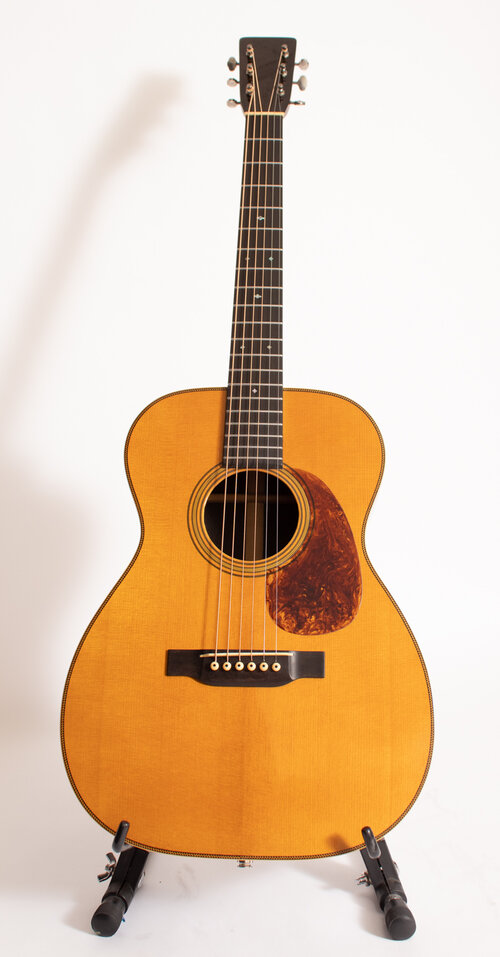 • Natural, Iced-T, or Shade top finish • Top : Torrefied adirondack spruce • Side&Back : Honduran mahogany or • Neck : Honduran Mahogany • Fretboard and bridge: Ebony • Neck width at nut: Vintage spec, 1 3/4” • Neck width at body joint/bridge • Scale length: 24.9” • Nut and saddle: Bone • Binding material: Black plastic or Tortis • Bridge pins: Ebony Un-slotted • Hardshell Case • Available in Lefty. |