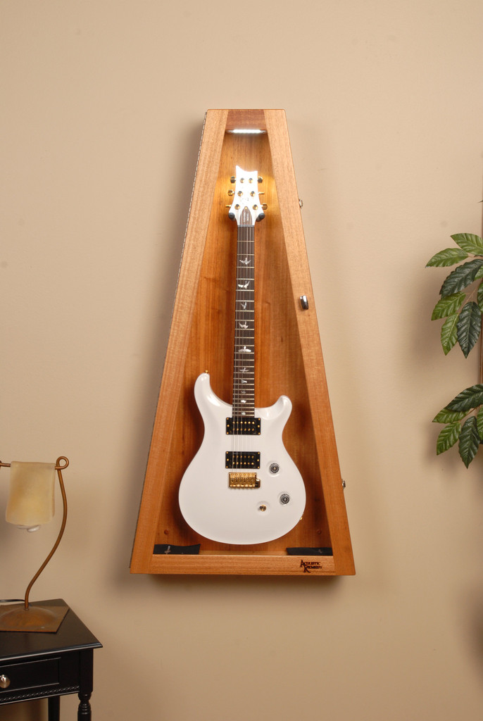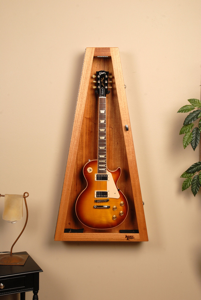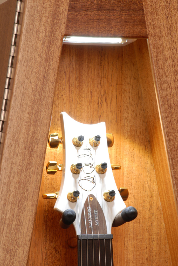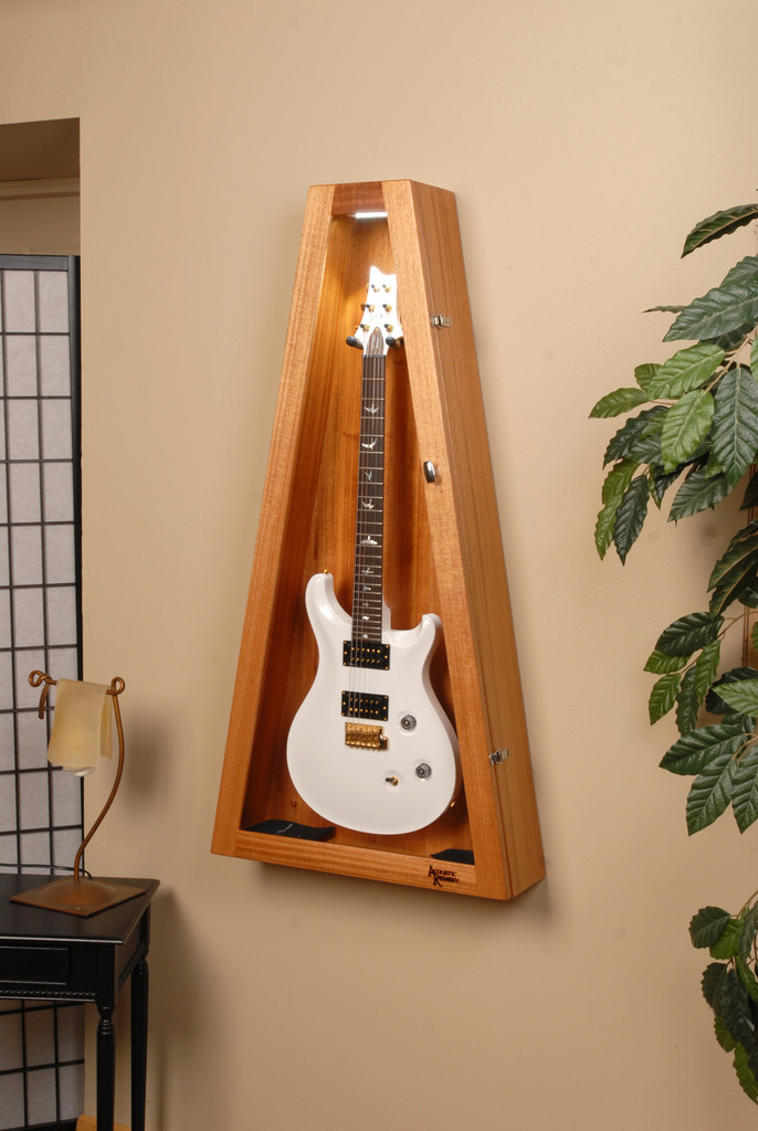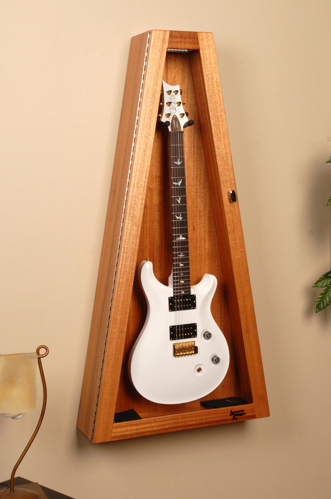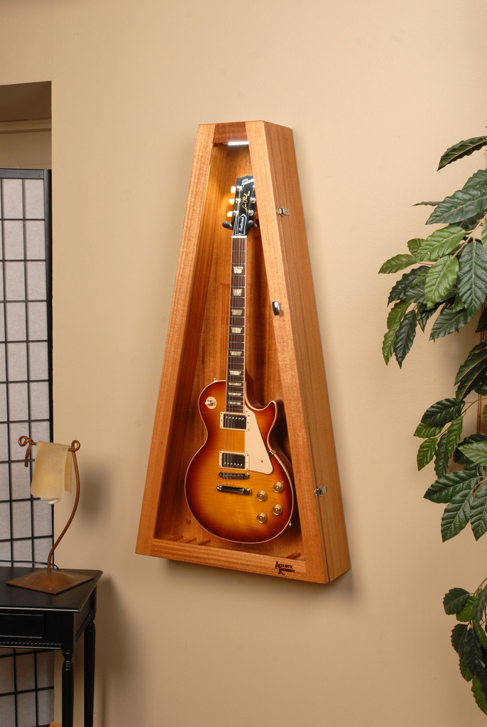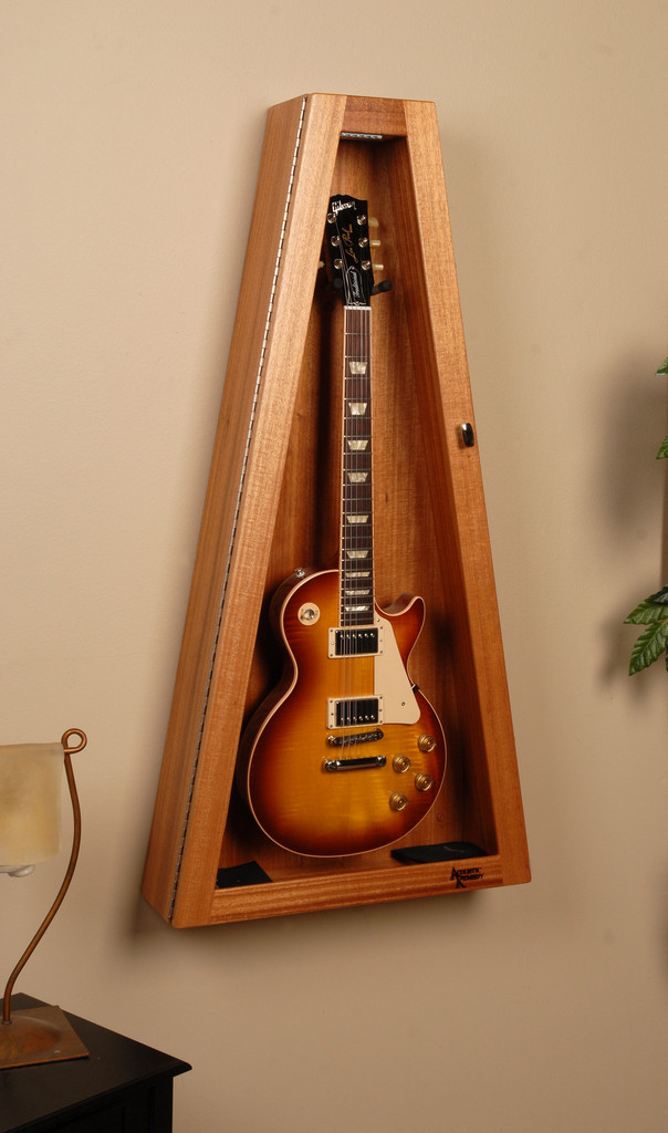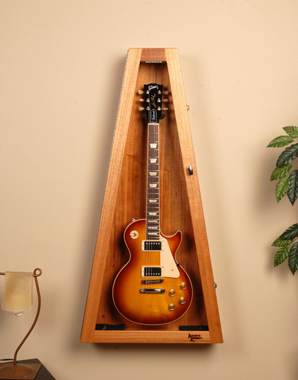 Ribboned Striped African Mahogany Wall ClimaStand for Electric Guitars リボン・アフリカン・マホガニーRibboned African Mahogany, Khaya Ivorensisこの材は薄い茶からこい茶色にハニーカラーのストライプやフィギャーが複雑に入っています。アフリカン・マホガニーはアフリカ西部かで伐採されて世界中に供給されています。数多くのギター・メーカーが高級ギターの製作に使用しています。