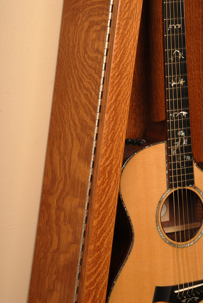 ホワイトオーク White Oak, Quercus alba 年輪に対して直角に柾目に切り出された材は、真直ぐな柾目の木目の間にウェーブのかかったリボンのようなパターンが浮き出ています。木髄は放射線状に育ちますが、板目に切り出すと放射線状のパターンをカットしていまいますが、柾目に切り出すと木の表面に綺麗に出ます。目に見える木目は比較的真直ぐで均等です。柾目の均等な木目の材はより安定性があります。
