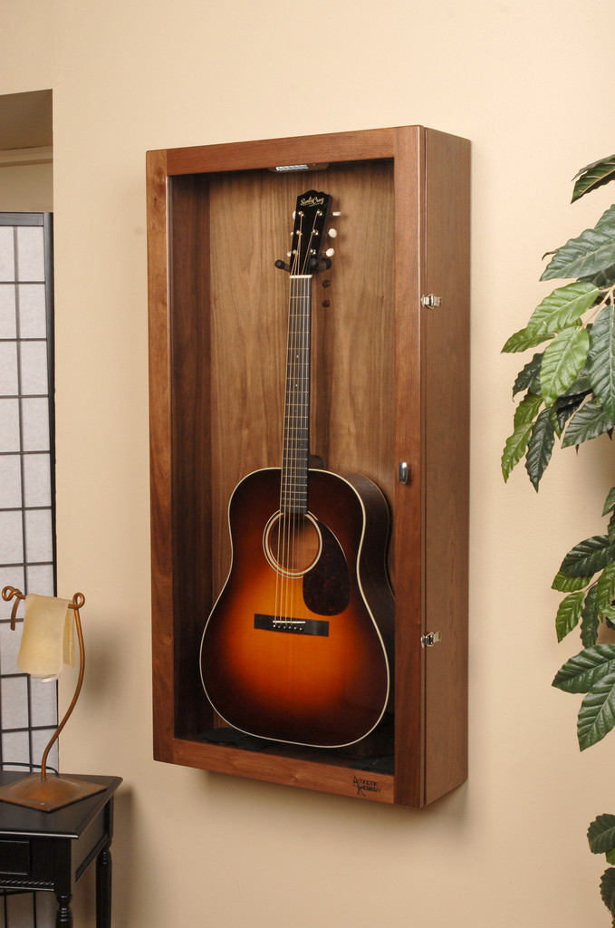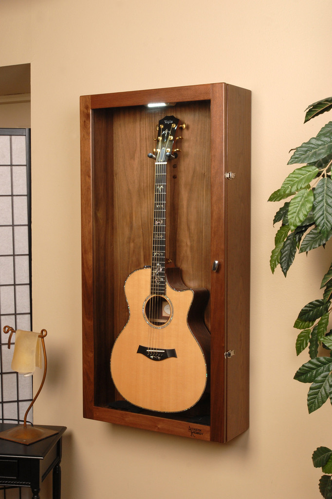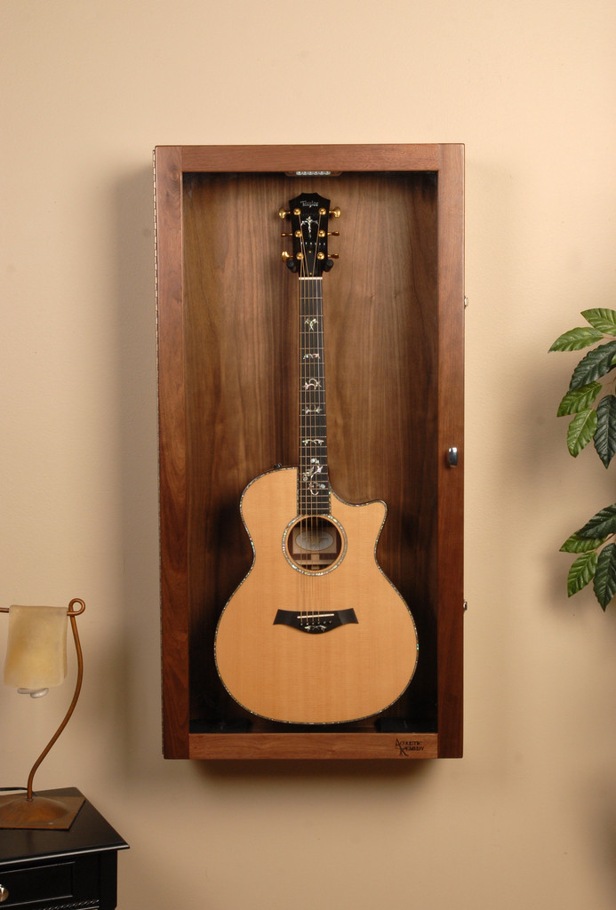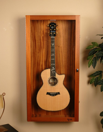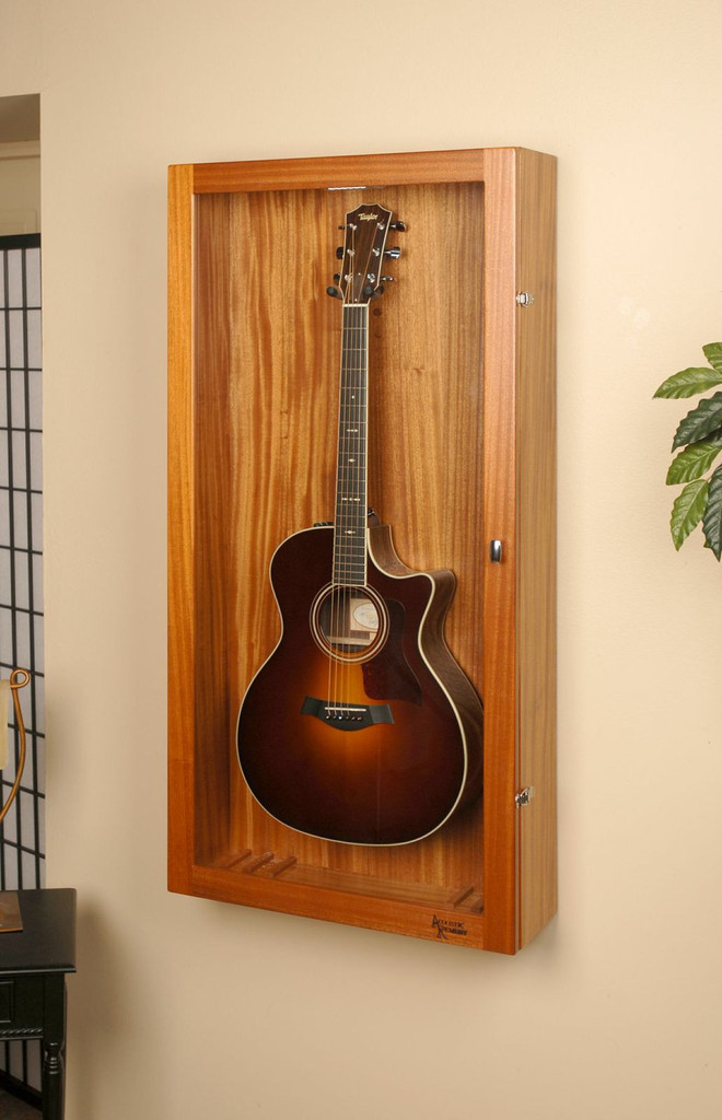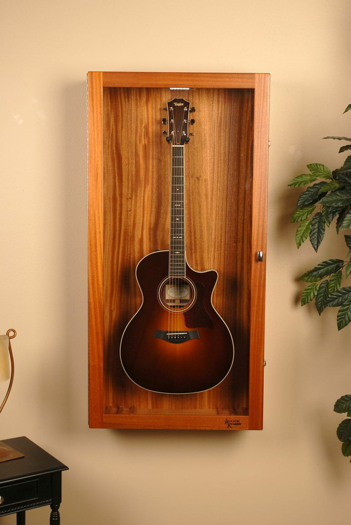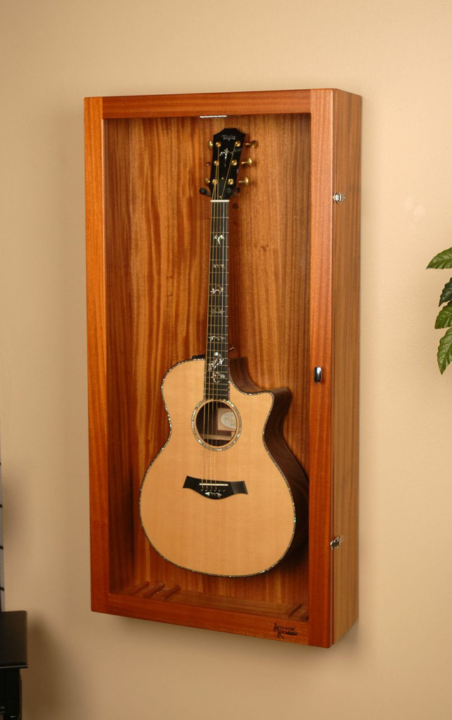 Rectangle Wall Cases 長方形型の壁付けタイプディスプレイケースです。 クリマスタンドと同様にチェーリー、ウォルナット、メイプル、マホガニーから木材を選択で出来ます。 全ての壁付けタイプのモデルは3ヶ所のネジで壁に固定します。 壁の構造によっては取り付け出来ない場合がありますので予めご了承ください。