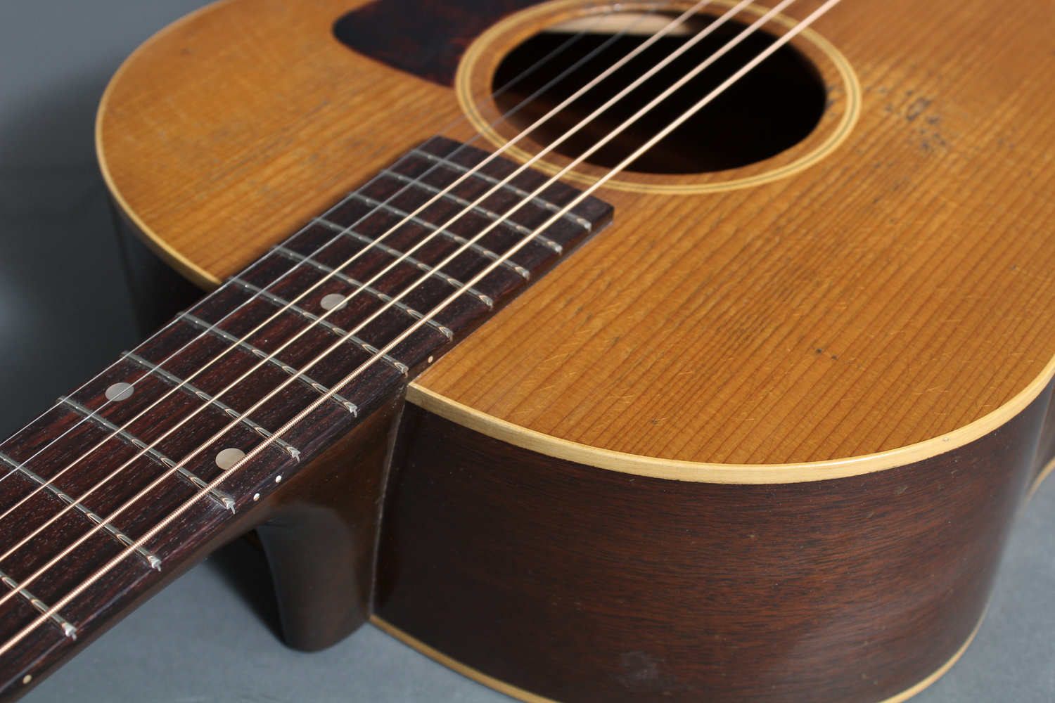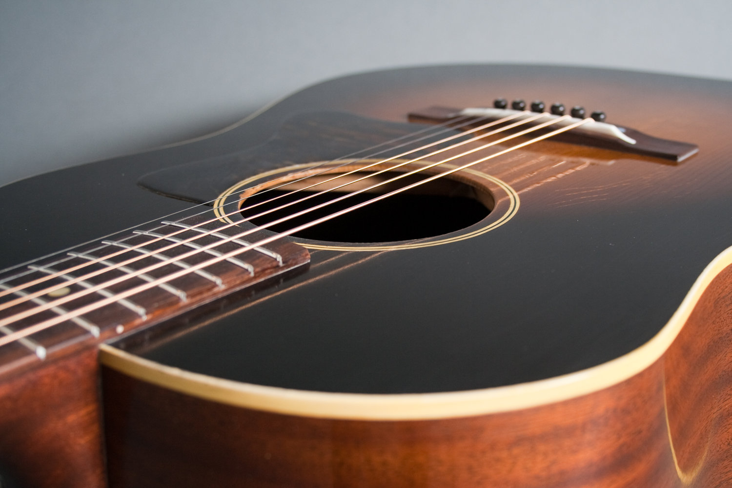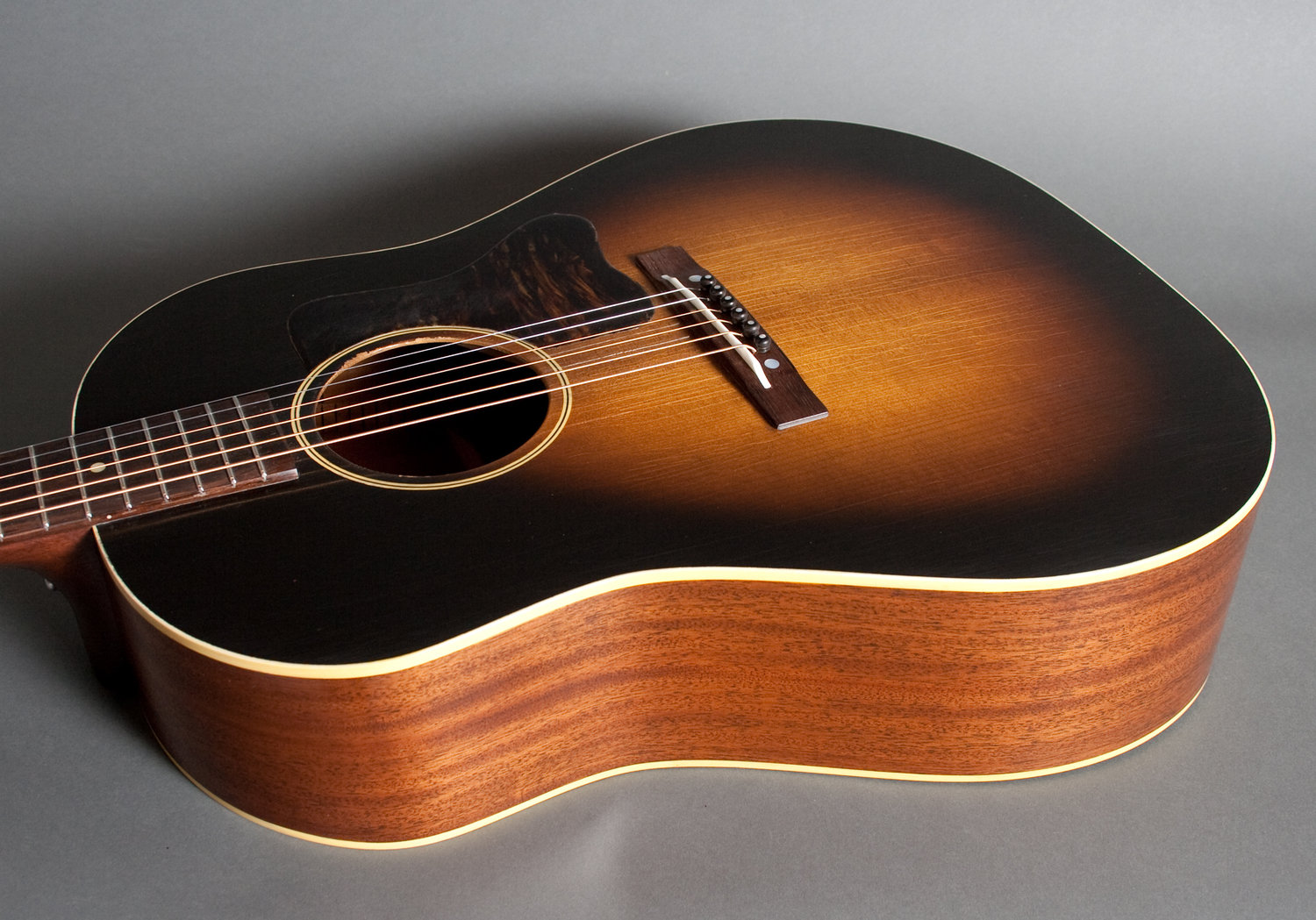 • Top: Torrefied Adirondack spruce • Side&Back : Honduran mahogany • Neck : Honduran Mahogany • Neck width at nut: Vintage spec, 1 11/16” • Neck width at body joint/bridge • Fretboard and bridge : Rosewood • Scale length: 24.9” • Binding material: Cream plastic • Nut and saddle: Bone • Vintage style Firestripe pickguard • Dovetail Neck Joint • Ultra Thin Nitro Cellulose finish • Hide glue • Harptone Case • Available in Lefty. |